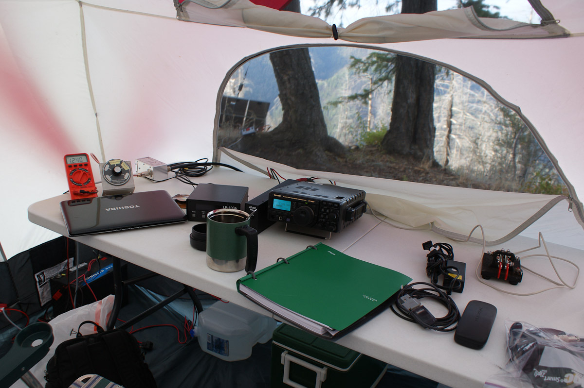 In a remote campsite and basecamp, during a field day, you might walk into one of our camps and see a tower 30ft in the air, with antennas on it. You will notice that, for the last mile or so of the hike you began to have cell service again! And when you enter our camp, your smartphone comes alive! That's because we use special equipment to pull in cellular services from distant towers too far for your personal cell to reach. This provides us with Internet access, and cellular telephone service, and with other equipment, and the miracle of mesh networking, each tent can have a computer that is connected via a wireless network to the other tents in our camp. We can browse the Internet, and share and transfer files back and forth with each other. And on our desk in each tent, we can have a telephone, with dialtones, and calling service, right there in the middle of nowhere! Our handheld radios will work for miles and miles around us, and we can all talk together, because of that tower, and because of the repeaters and their antennas connected on it! We have paging devices, full cellular service, long-range 2-way radio service, and worldwide digital 2-way radio service, using our digital radios. And of course, the HF/shortwave radios can reach just about anywhere in the world! These guys may have flatscreen TV's or monitors, in their tents, a telephone, a printer for hardcopy reports, radio equipment, and the power to charge your devices at the end of the day!